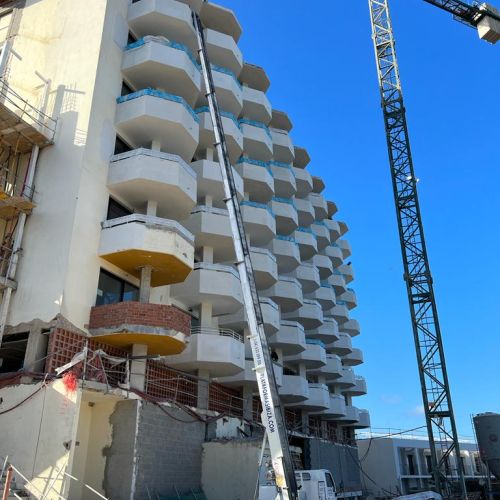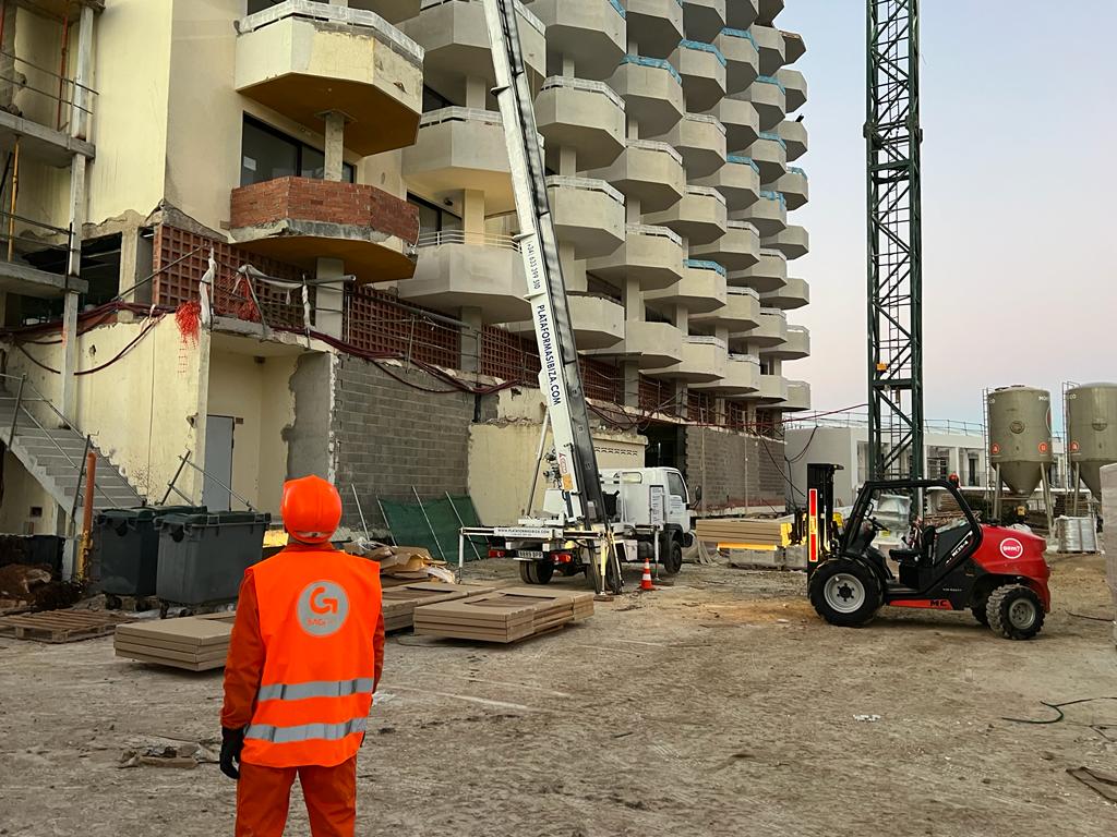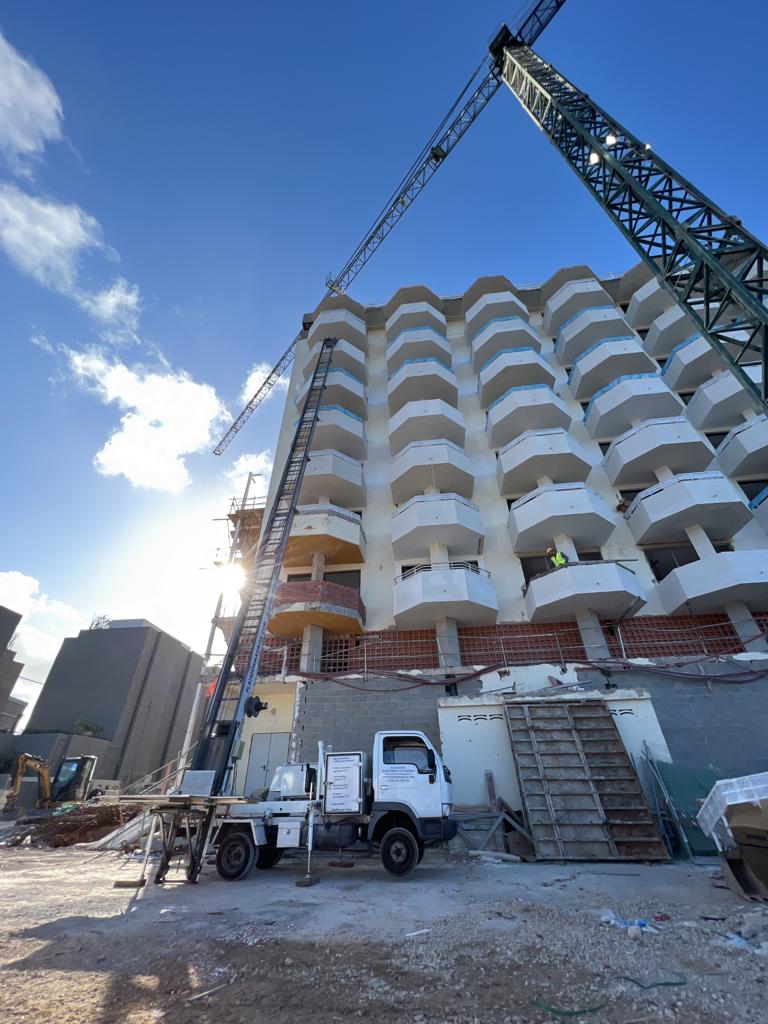 Os enseñamos un nuevo trabajo llevado a cabo por el equipo de Plataformas Ibiza. En este caso hemos colaborado con una empresa para la reforma de un hotel 5 estrellas en Ibiza de 26 metros de altura.