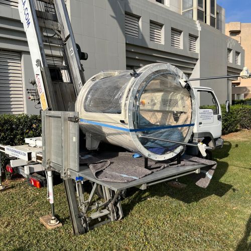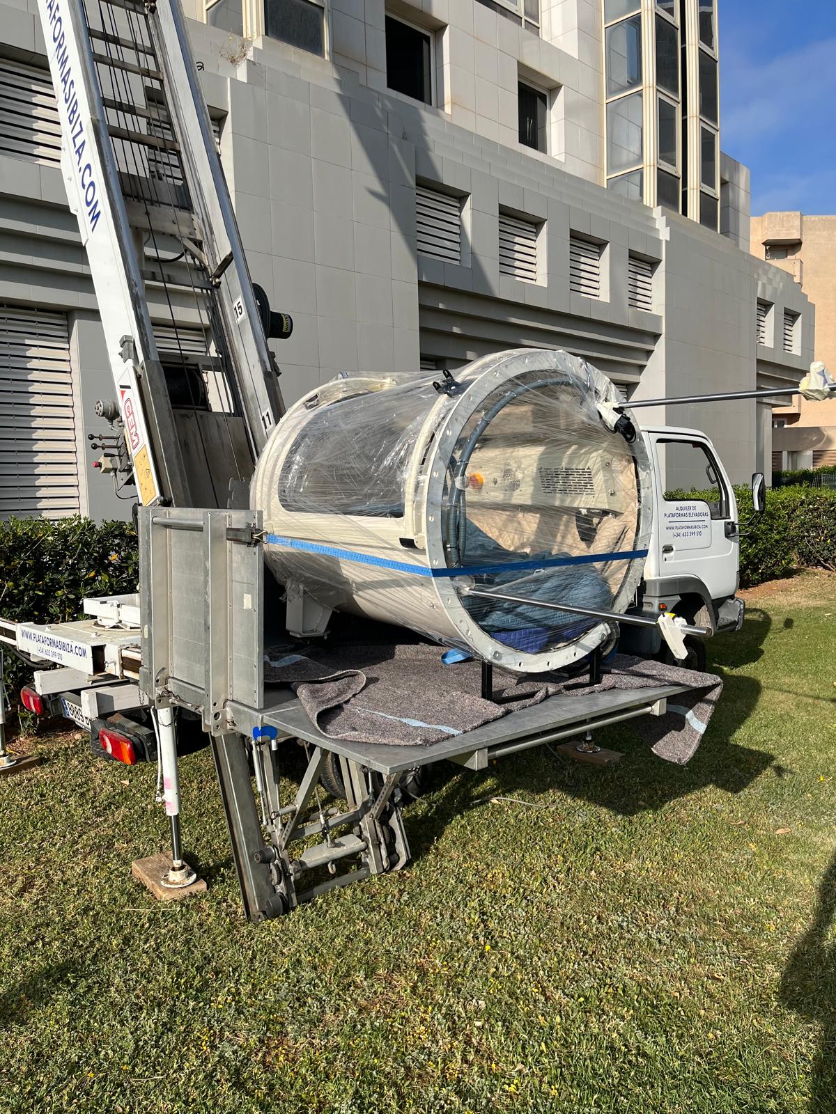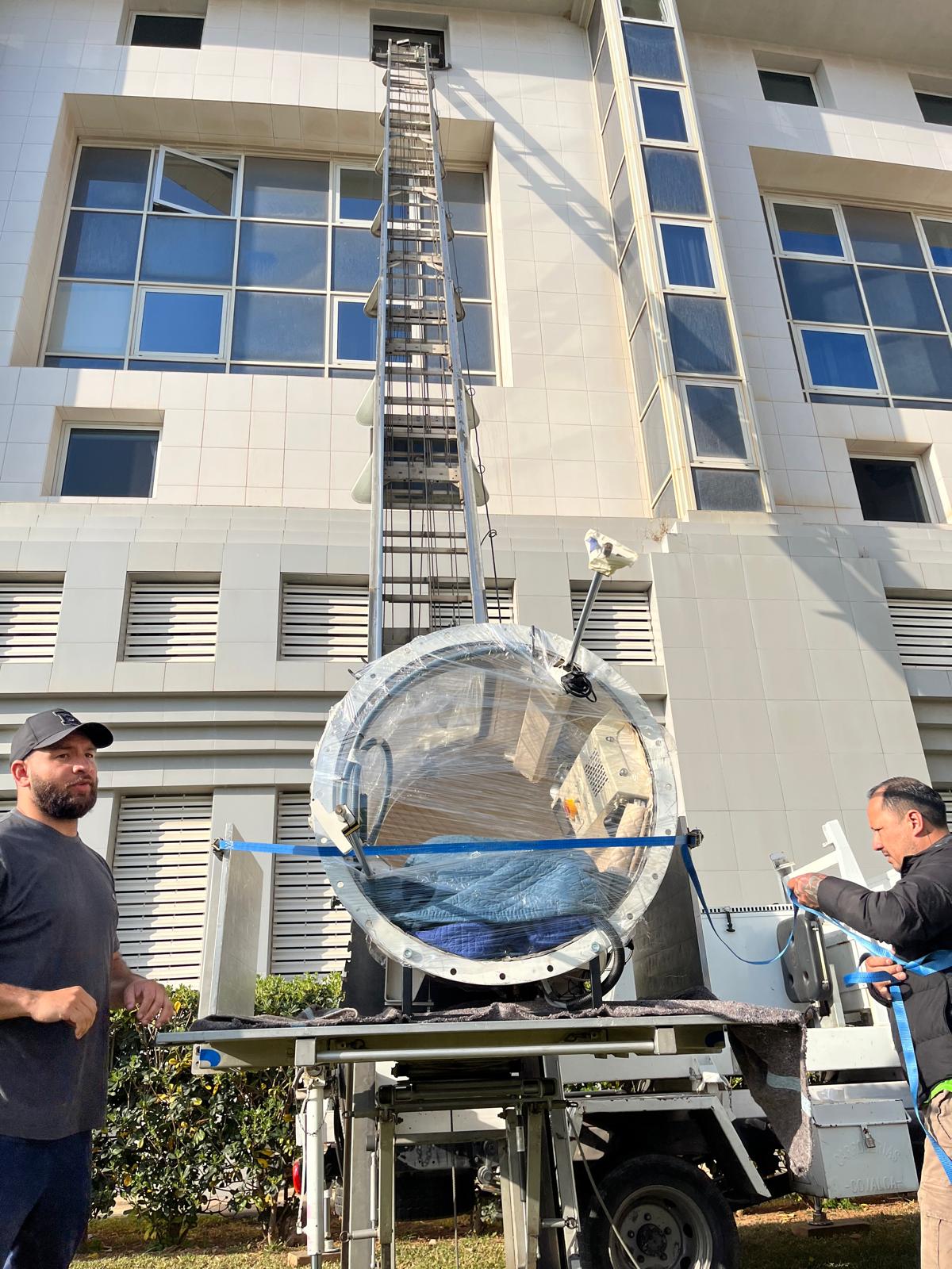 Hoy hemos realizado la elevación de una cámara hiperbárica de 250kg a la planta de arriba de una empresa.
