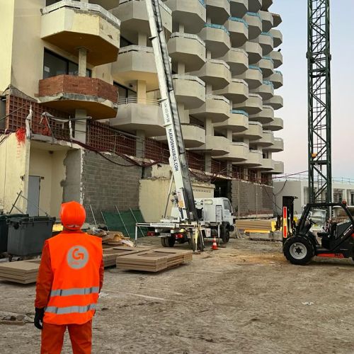 Os enseñamos un nuevo trabajo llevado a cabo por el equipo de Plataformas Ibiza. En este caso hemos colaborado con una empresa para la reforma de un hotel 5 estrellas en Ibiza de 26 metros de altura.