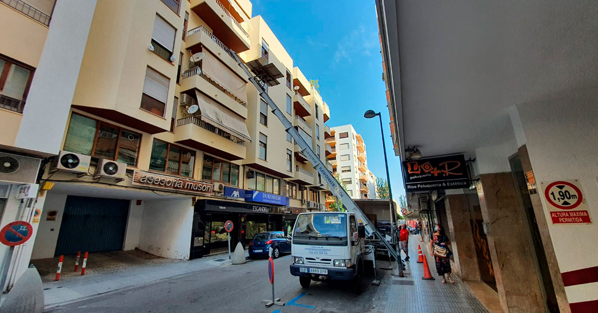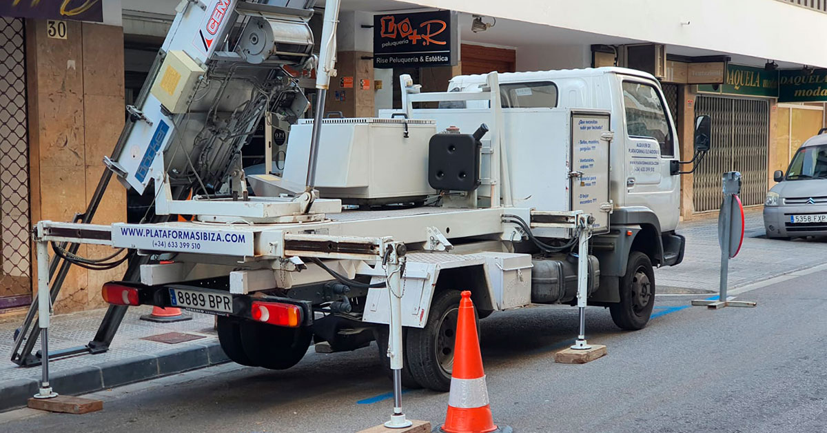 Trabajamos en todos los municipios de la isla, en este caso utilizamos nuestra plataforma elevadora en el de Eivissa.